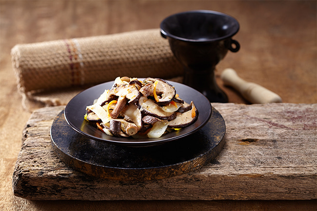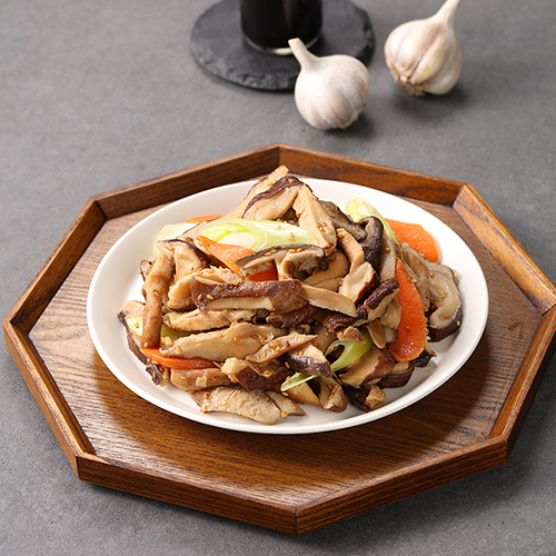 밥이나 면요리와 함께 먹으면 잘 어울리며, 술안주로도 좋습니다. - 볶음 과정에서 표고버섯이 물을 내지 않게 하는 방법은?
